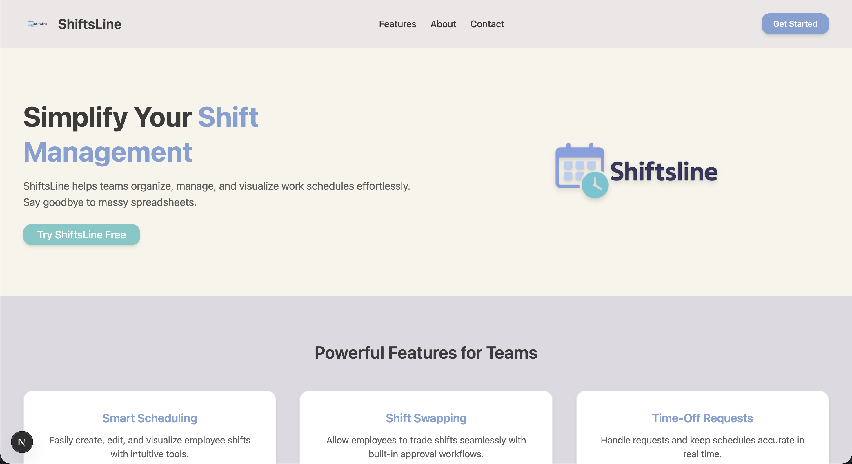 This is my current project that I am working on at this moment. It's called Shiftsline its built with NextJS and styled using tailwind along with shadcn ui components. it uses mongodb as the backend for storing the shifts users and companies information while having some important information hidden on purpose.